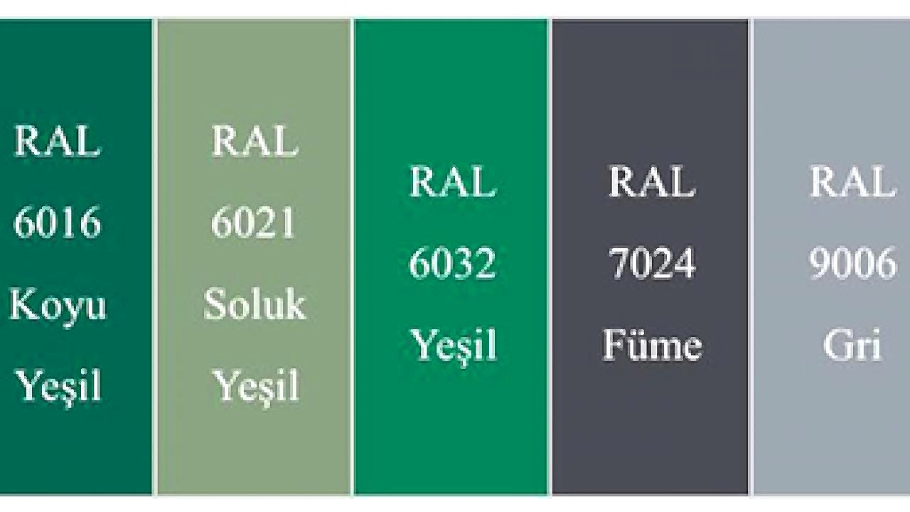 Renk | RAL kartelasındaki tüm renkler için çalışma yapılabilir. |